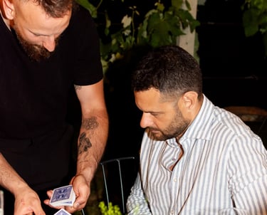 Nei miei spettacoli One-to-One , ogni dettaglio è studiato per creare un'atmosfera esclusiva e coinvolgente. Attraverso l'osservazione e tecniche raffinate, ti guiderò in un Viaggio dove la realtà si mescola all'impossibile. Ogni effetto è personalizzato, ogni rivelazione è unica.